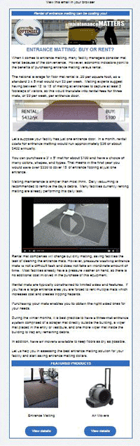 Choose the e-newsletter program to meet your needs and budget. Our monthly e-newsletter program for distributors assures a content-rich, industry specific e-newsletter is distributed to your e-mail list every month. |